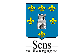 The flag of Sens (photo) is white with the municipal coat of arms surmounting the lettering "Sens / en Bourgogne".