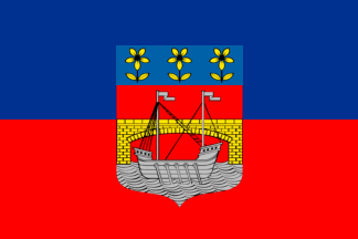 The municipal flag of Neuilly-sur-Seine is horizontally divided blue-red with the shield of the municipal arms in the middle. It was seen on pictures taken during the Challenge des mairies et des collectivités, a yachting competition organized for the local administrations in Brest in June 2005.