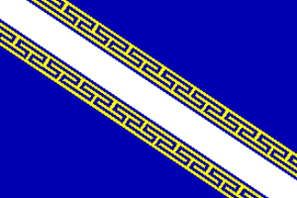 The flag of Champagne is a banner of the arms D'azur à la bande d'argent côtoyée de deux doubles cotices potencées et contre-potencées d'or (Azure a bend argent double cotised potent counter potent or), assigned to the province by Jacques Meurgey in his Notice historique sur les blasons des anciennes provinces de France (Historical note on the coats of arms of the ancient French provinces, 1941).