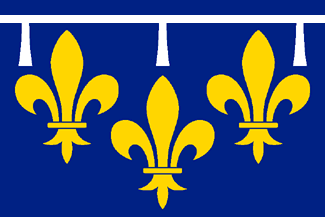 The flag of Orléanais is a banner of the arms D'azur aux trois fleurs de lis d'or surmontées d'un lambel d'argent (Azure three fleurs de lis or a label of three points argent, assigned to the province by Jacques Meurgey in his Notice historique sur les blasons des anciennes provinces de France (Historical note on the coats of arms of the ancient French provinces, 1941).