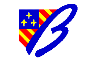 banner of arms of Burgundy, and on its right part a big blue "B" letter.
