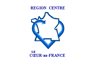 Pascal Vagnat additionally shows the previous version of the flag, after his personal observation, dated August 1997. On that flag, the shape of the map of France is different, the heart is really heart-shaped with three shades of blue, lighter inside the heart, brighter outside it, ending in an arrow piercing the map. REGION CENTRE is written above the emblem, LE / CŒUR-DE-FRANCE below it.Ivan Sache, 30 August 2009
