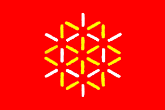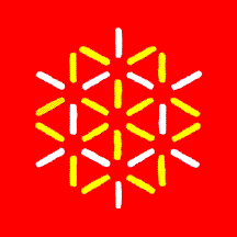 The "seven suns" forms an hexagon. Each sun is made of a red disk, not