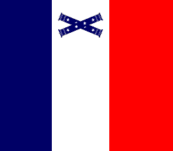[pay00], the flag of a Maréchal de France is a square white flag with the French Tricolore in canton and two crossed blue marshal's batons in lower fly. Since there is no Maréchal de France still alive, the flag is prescribed but not currently in use.