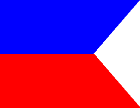 The pennant of the Generals commanding Cavalry Divisions is in size 0.65 x 0.5 m, diagonally divided, per bend sinister, red-white for the Commander of a Group of Divisions and blue-white for the Commander of a Division.