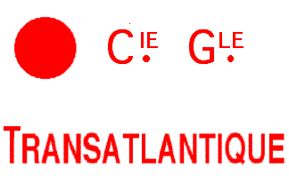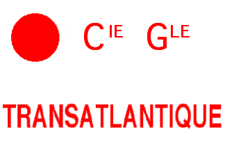 The house flag of the Transat (counter [table] flag) is white with a red disk in canton and the red writing: CIE GLE (for COMPAGNIE GÉNÉRALE) TRANSATLANTIQUE.