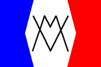 P. Bois shows the house flag of the Comptoir Général des Transports as vertically divided blue-white-red, the white part being hexagonal and charged with the black, interlaced letters "M V", the owner's
