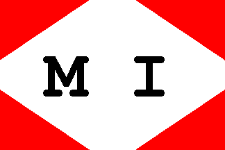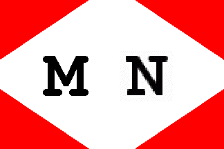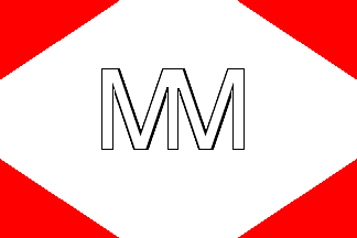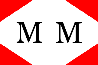 Reed (1891) shows the flag as a red field with a small white diamond outlined black and bearing the black letters "M.M."; as pointed out by Neale Rosanoski, "this seems suspect in lieu of any supporting information".