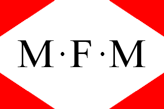 The house flag of the company, as shown on a company's share, is very similar to the house flag of the MM. Assuming that the colors of the original house flag were kept, the flag would be white with a red triangle in each corner and the black letters "M.F.M" in the middle.