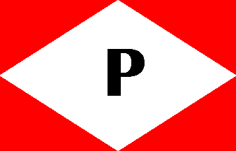 According to Loughran (1979) [lgr79], the state-owned State Sea Postal Service, founded in 1835, used red flag with a white lozenge charged with a black "P", therefore the remote forerunner of the house flag of the Messageries Maritimes.