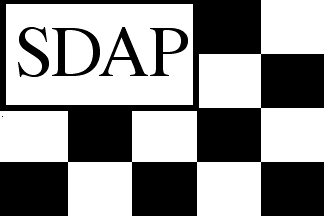 The Yearbook of the Central Committee of France Shipowners (1922) shows the house flag of Société Dieppoise d'Armement à la Pêche as checquered white and black, 5 x 4, the six upperleft pieces being masked y a white canton oultined in black and charged with the black letters "SDAP".
