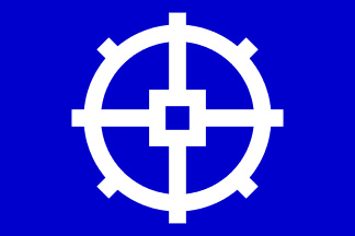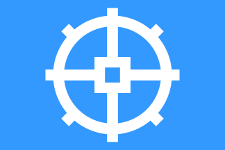 The house flag of Delmas is light blue with a white steerwheel in the middle.