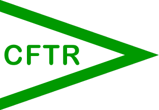 The house flag of CFTR, as shown in Flaggen auf dem Rhein (1952) [d9e52], is a white pennant, bordered green on two sides, hoist excluded, and bearing the green initials "CFTR" (no serifs).