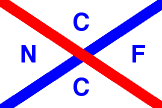 white-blue-white-red with the black letters "N", "C", "F" and "C" in