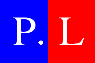 Jean Randier shows the house flag of the company as vertically divided blue-red with the white letters "P." in the blue stripe and "L" in the red stripe.