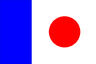 Chuinard's house flag is shown in the Yearbook of the Central Committee of France Shipowners (1922) as vertically divided blue-white (1:2) with a red disk in the white stripe.
