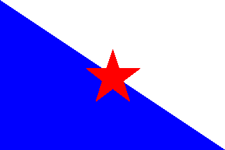 The Société de Chalutage de la Méditerranée shipping company seems to be only known by its house flag, shown in the Yearbook of the Central Committee of France Shipowners (1922) as divided white-blue by the descending diagonal and with a red star in the middle.