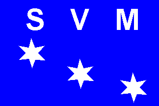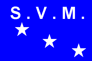 The house flag of Société des Voiliers Marseillais is blue with the letters SVM in white and three white stars.