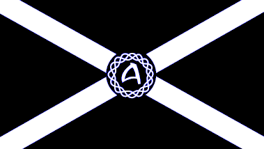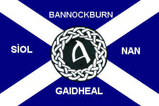 The Siol nan Gaidheal flag is a circular celtic Knot with an "A" for Alba
