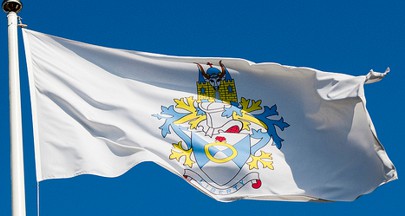 I saw a white flag with a coat of arms flying from the Hackney Town Hall