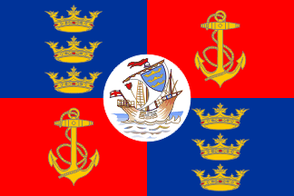 Until the latter part of the 17th century minor maritime disputes were settled in local Admiralty Courts with the presiding official having the title admiral or vice-admiral. The Lord Mayor of Hull (Kingston upon Hull) was Admiral of the Humber, an estuary on the east coast of England. The last court was held in 1683, but the title has been retained for ceremonial purposes. At one time the Admiral's flag had 'the Admiralty Arms upon it', but the present flag has the seal of the Admiral in the centre of a flag quartering the three coronets of the arms of the City of Hull and a foul anchor.