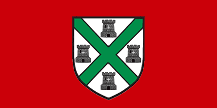 Based on http://en.wikipedia.org/wiki/Flag_of_Plymouth, Plymouth flies a red flag with the shield centred, a green saltire on white with a tower in each quarter.