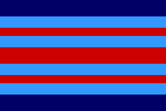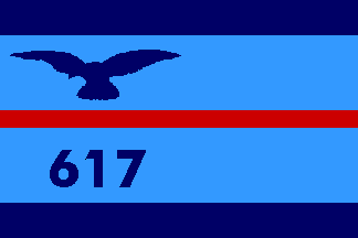 One narrow red stripe (like that of Air Commodore), but with a depiction (in dark blue) of the RAF Eagle in the top left corner of the upper air force blue stripe. If the Squadron Leader is in command of a squadron, the numeric designator of the squadron is also displayed on the flag (in dark blue) on the lower air force blue stripe directly beneath the eagle. The eagle faces toward the hoist of the flag.