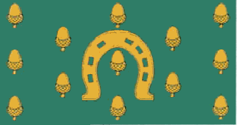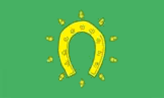 The flag of Rutland county council is based on the coat of arms. The descriptions of these is: Vert, semée of acorns, a horsehoe Or. Crest: on a wreath of the colours, in front of a horsehoe an acorn Or, leaved and slipped proper. Motto: Multum in parvo. The arms were granted on 1 May 1950.