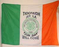 This image (located by Thierry Gilabert) is a photo of a flag bearing an IRA slogan, which now appears to be rarely seen. Celtic Football Club has no association with the IRA.