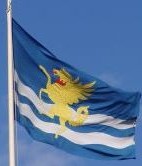 a field of azure, in base barry wavy of silver (four pieces). Large image: