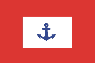 flag with broad red border and a blue anchor in the centre. The flag is made of