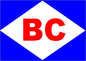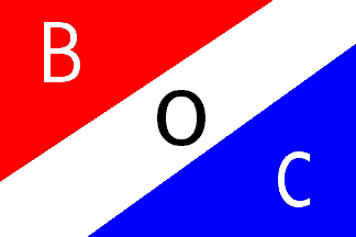 Red, white and blue diagonal tricolor; white B, black O, white C. Source: All about Ships & Shipping, 1938
