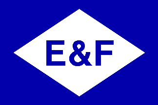 as blue with a white diamond bearing blue characters (without serifs) `E & F' in