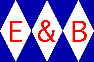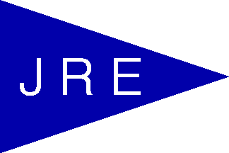 Blue Pennant with JRE in white over a blue flag with red E&B in three white