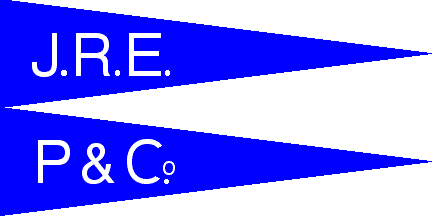 The plain blue pennant bearing the white "JRE" is that of Ellerman Lines Ltd.