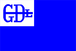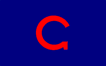 dark blue rectangular flag with a red 'G' in the centre. The flag is made of