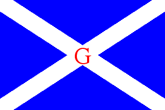 Glasgow, as white with a blue saltire charged in the middle with a red letter