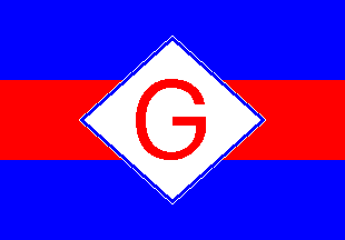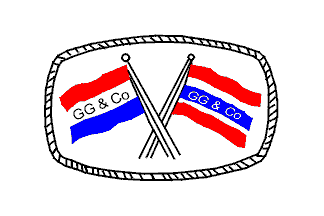 Triband red-white-blue, proportioned 2:1:2; on white "G.G.&Co" in black.