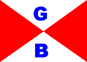 letter "G" in upper hoist and a blue letter "L" in lower fly. The shade of blue