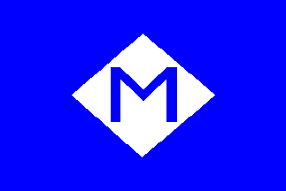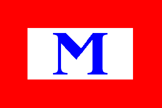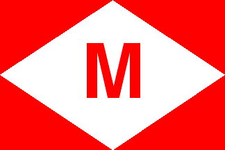 Barrow-in-Furness, as red with a white lozenge charged with a red letter "M".