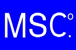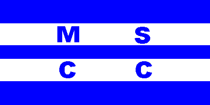 From the website of the National Maritime Museum, "the house flag of the Manchester Ship Canal Co. Ltd., Manchester. A blue rectangular flag with two broad white stripes across the centre bearing the blue letters 'MS', 'CC'. The flag is made of a wool and synthetic fibre bunting. It has a cotton hoist and is machine sewn. A rope and toggle is attached."