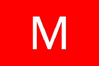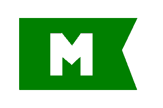 green swallow-tailed burgee with a white border. A white 'M' is placed in the
