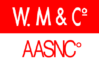 Now to the flags. The first one found is a red triangular pennant with initials in white 'W.M & Co' (the 'o' is raised) and can be seen here, top of page: http://www.red-duster.co.uk/MILBURN.htm.