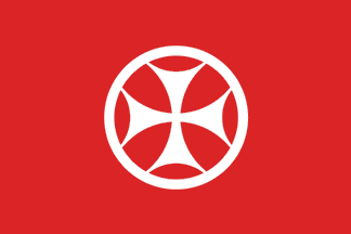 The flag is a banner of the municipal arms, "Gules a cross patty