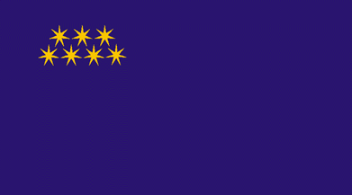 The flag of the Union for the Democratic Revival is a blue rectangular flag. Blue is the symbol of a sea country. In the upper left-hand corner of the flag on the background of cloudless blue sky there are twelve shining golden seven-pointed stars symbolizing the unity of the historical parts of Georgia and of the regional structure of the state. The main idea represented by the flag is the revival of the regions and of the industrious mighty democratic state.The emblem of the Union: Mountain eagle is the symbol of freedom, reason, mightiness and constant vigilance. The eagle, which is the reliable guard of the country, looks proudly and confidently with its keen eyes into the boundless space, with its spread strong wings, which are the symbol of eternity and overall revival, it supports the life-giving Sun. The olive branches are the symbol of peace.