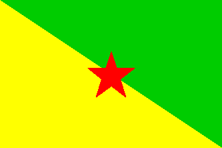 Although there is no evidence of a "French Guiana Liberation Movement", the flag of this "movement" is widespread over the Internet, as a graphic only, with the lower triangle green and the upper triangle yellow.
