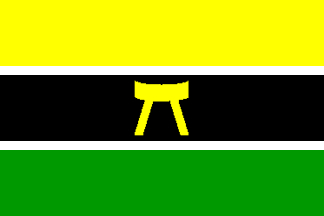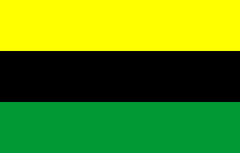 Yellow over black over green horizontal stripes with a yellow device