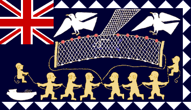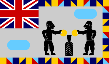 with a Union Jack in the canton. Part of the border is fringed with an