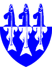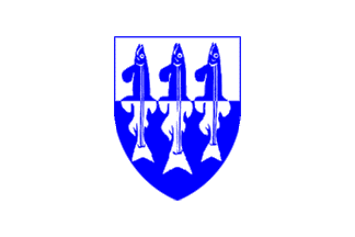 The arms are per fess argent and azure three capelin fish