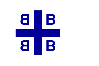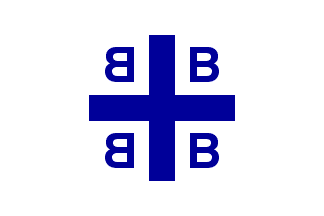 The flag attributed to Constantine is white with a blue couped cross. In each corner of the cross is a B-shaped firesteel; those to the left of the cross are backwards.